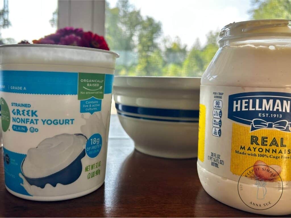 - 2 ¼ cups mayonnaise or 2 ¼ cups plain Greek yogurt