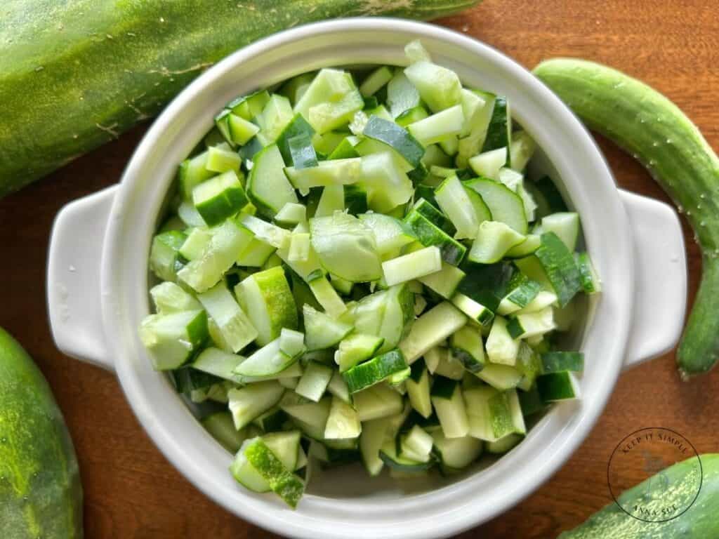 - 3 large cucumbers, diced
