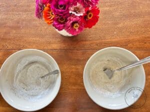 - In a large mixing bowl, stir together the mayo or Greek yogurt, vinegar, garlic, salt, pepper, and dill.