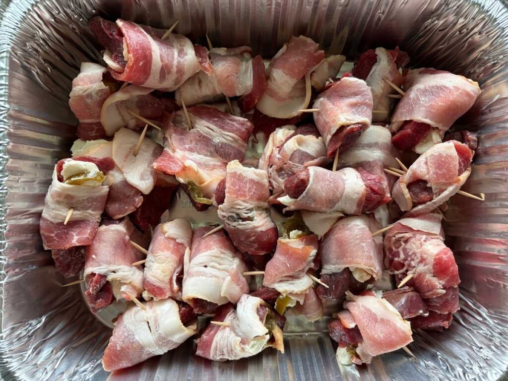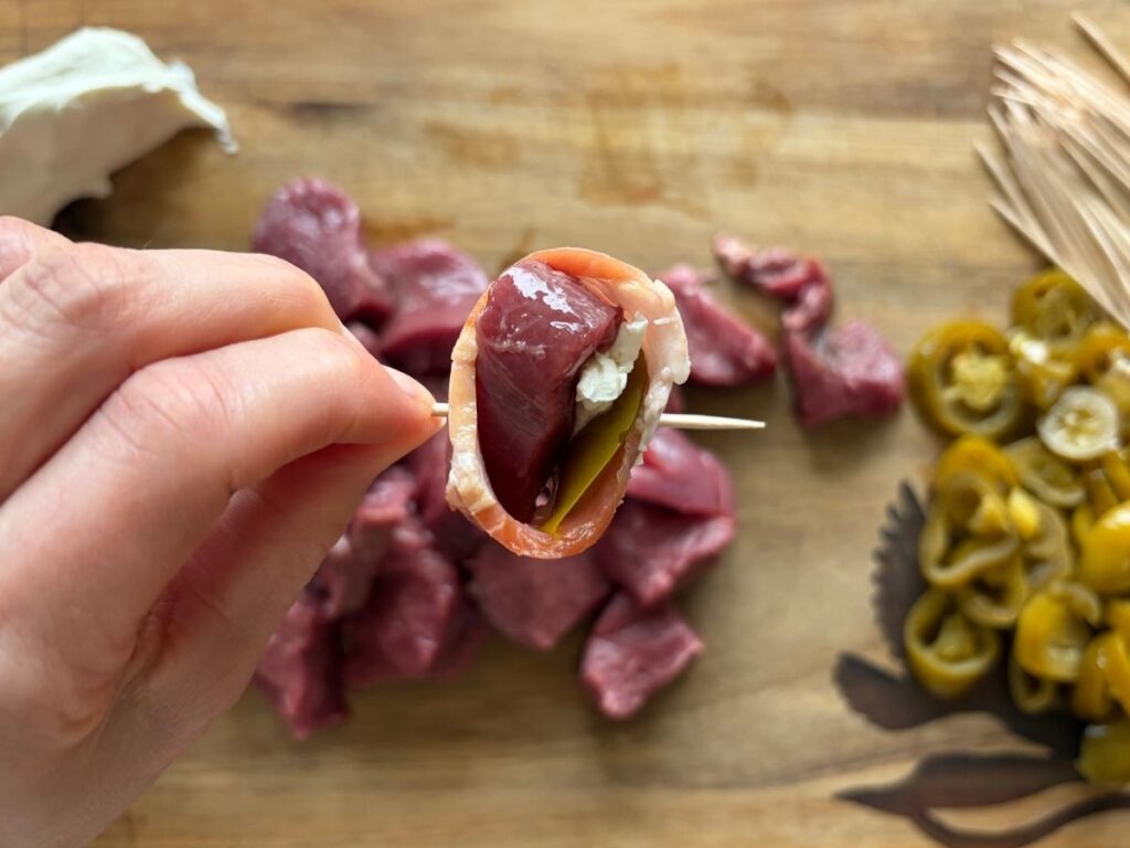 Don’t overthink the order—it really doesn’t matter. You’re just making sure each bite has bacon, venison, jalapeño, and cream cheese all wrapped together.