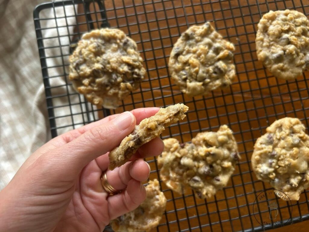 You will love making these with your kids because they can help mix everything together, and the process is quick and easy. It’s also a great recipe to bring to parties because people never expect that crispy crunch inside a cookie—it’s always a hit!