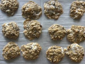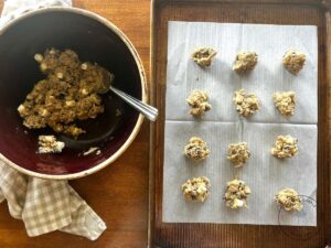 - Drop the cookie dough by medium to large spoonfuls onto a parchment lined baking sheet.